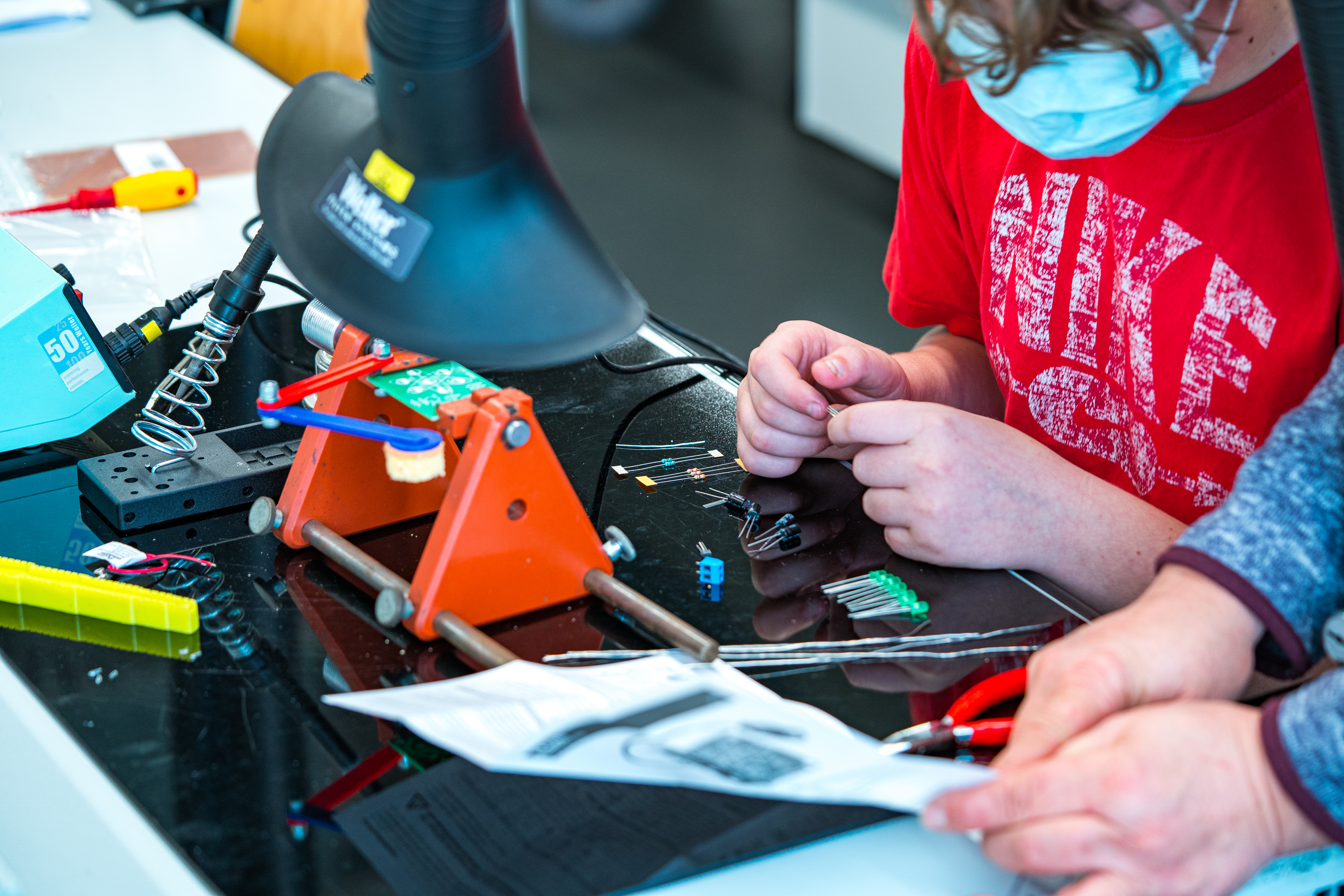 Trotz kurzfristiger Einführung der 3G-Regelung konnten wir am 09.Oktober zahlreiche Besucher/-innen im neuen Gebäude begrüßen. Die Besucher/-innen ließen sich umfangreich unsere Attraktionen erklären, es wurde gestanzt und poliert, gelötet und gespielt. In allen Werkstattbereichen waren zahlreiche Stationen zum Ausprobieren aufgebaut, die erarbeitete Werkstücke konnten mit nach Hause genommen werden. Neben der Witelo-Box und einem Sehtest durch die Krankenkasse bot das Deutsche Optische Museum Möglichkeiten zum Experimentieren. In der JBZ-Messe präsentierten sich unsere Gesellschafterfirmen und weitere Kooperationspartner mit eigenen Messeständen und Infoangeboten den Besucher/-innen. Das kulinarische Angebot wurde genauso gut angenommen wie die Möglichkeiten zum Basteln für Kinder.